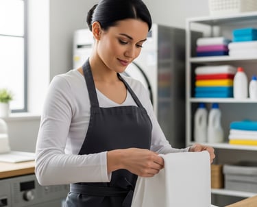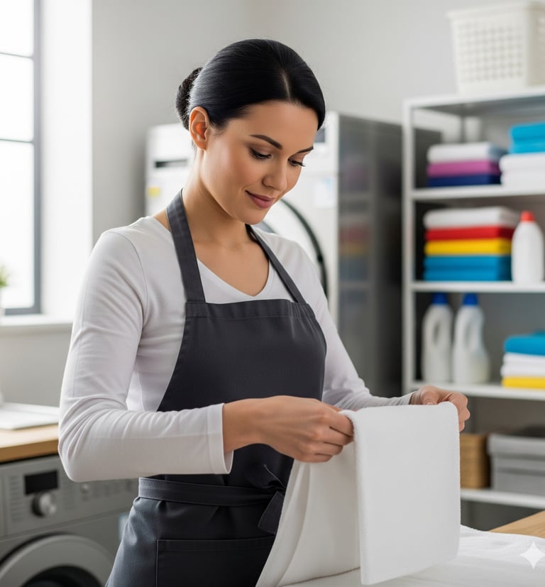 Organizing and Folding: Once dry, the professional meticulously folds all clothing, linens, and towels, often organizing them by type or family member.